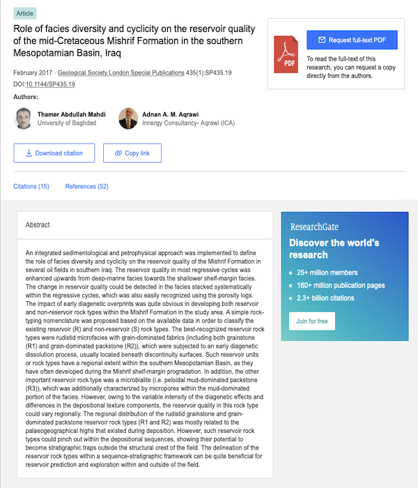 B) Published more than 50 papers on different geological topics in various international geological journals, in addition to numerous abstracts in conferences worldwide. Some selected publications are as follow: